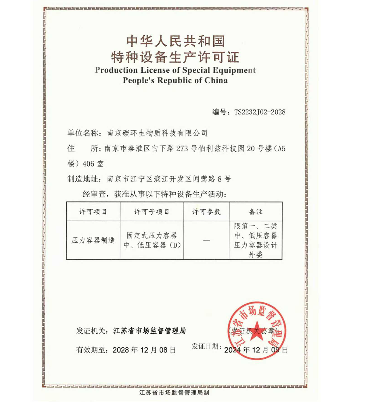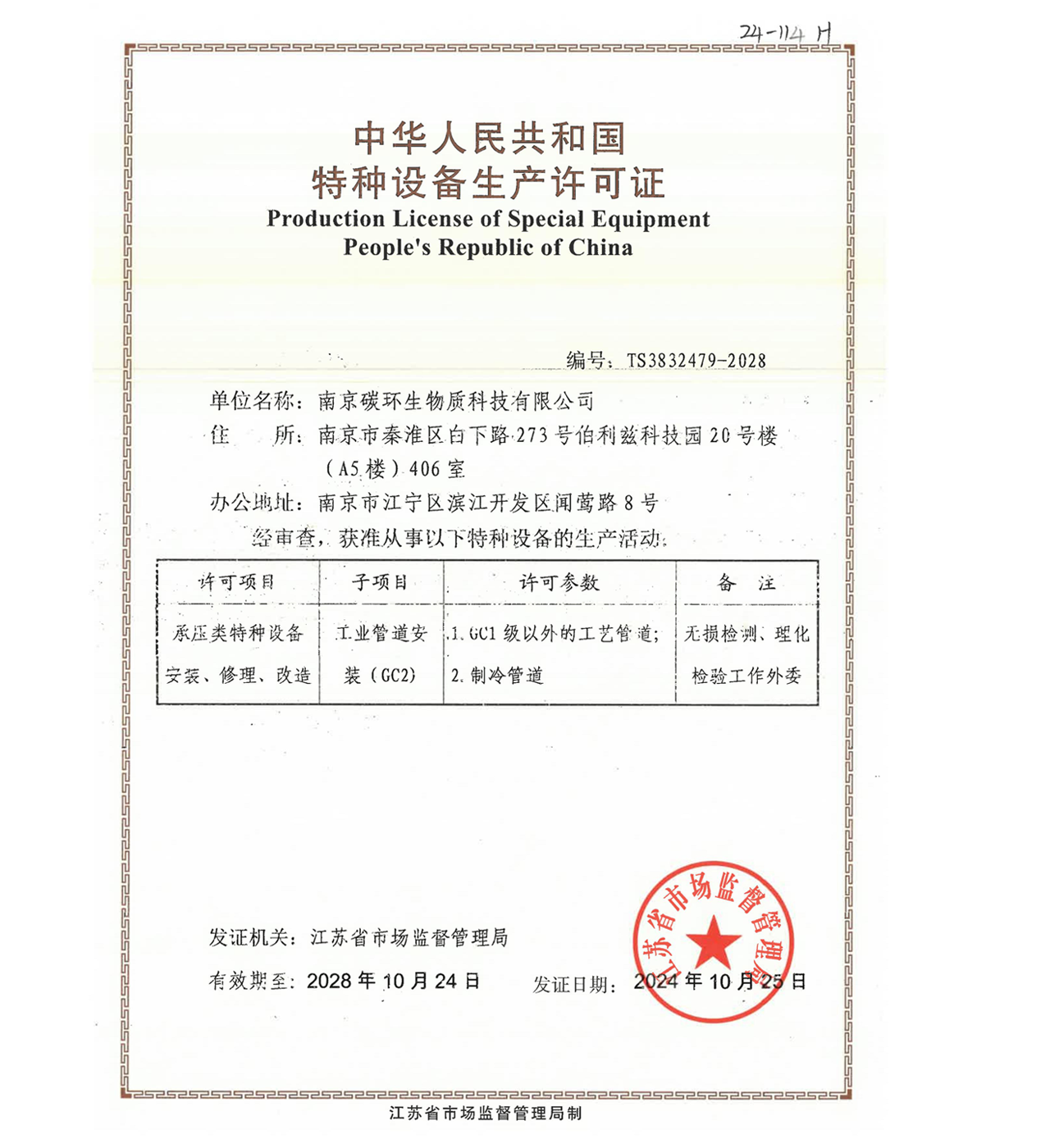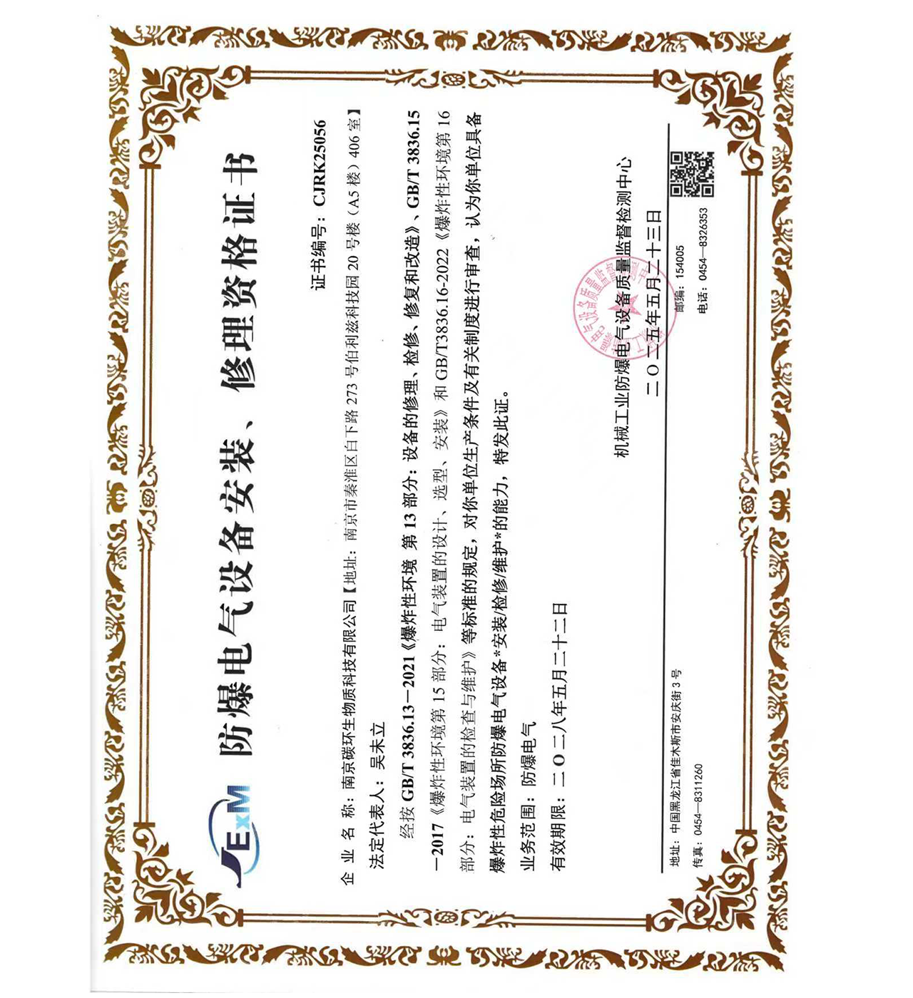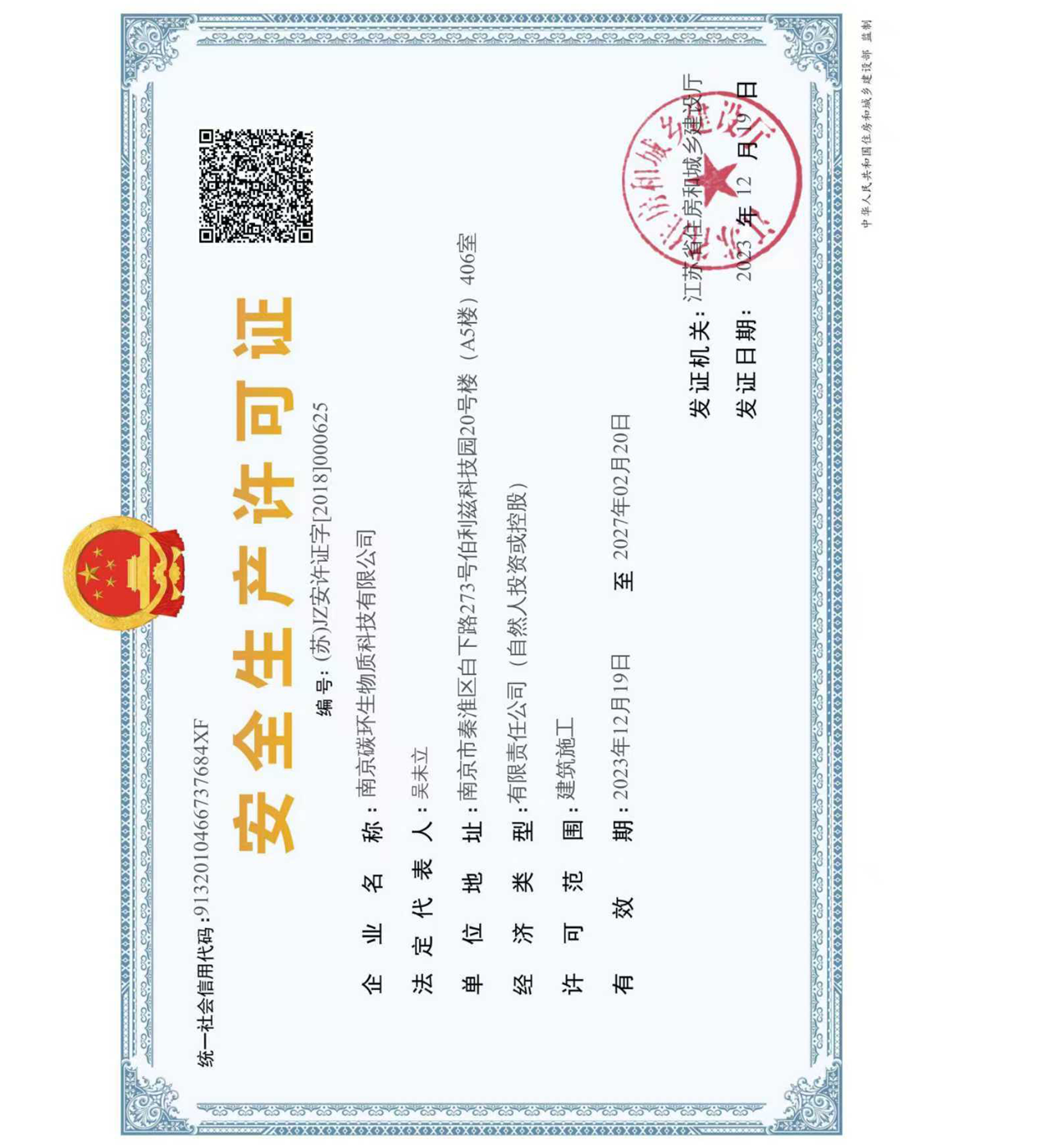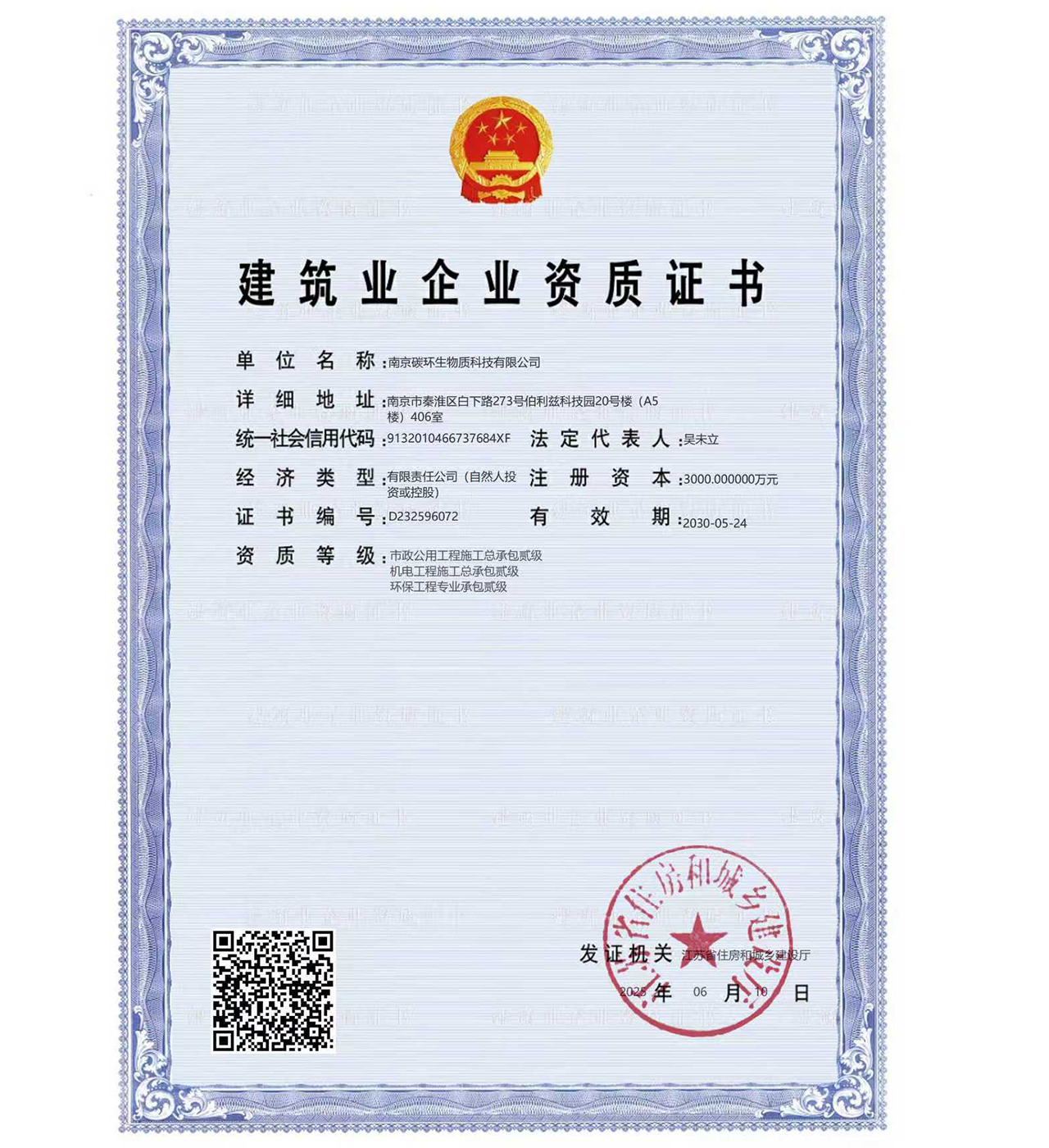 南京碳環(huán)生物質科技有限公司還有:環(huán)保工程總承包資質、壓力管道安裝資質、機電設備安裝資質等。