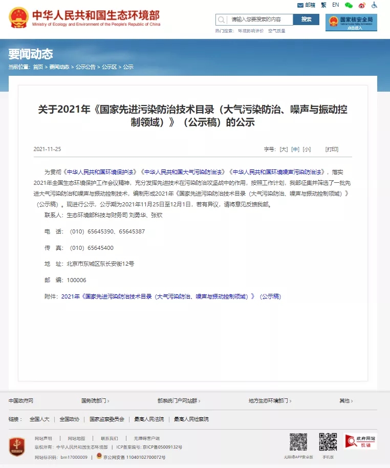 Recently, the Ministry of Ecology and Environment of the People's Republic of China issued a public announcement on the 2021 National Catalogue of Advanced Pollution Control Technologies (Air Pollution Control, Noise and Vibration Control) (publication draft). The serial number 20 recommended pollution control technology in the document is: Compression Condensation+ Membrane + adsorption process, source recovery of VOCs. In particular, the source recovery and discharge of methylene chloride organic solvent vapor.