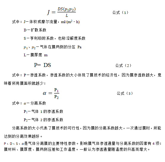 氣體透過膜的流量計(jì)算公式如下: